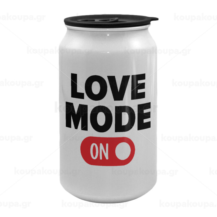 LOVE MODE ON, Κούπα ταξιδιού μεταλλική με καπάκι (tin-can) 500ml