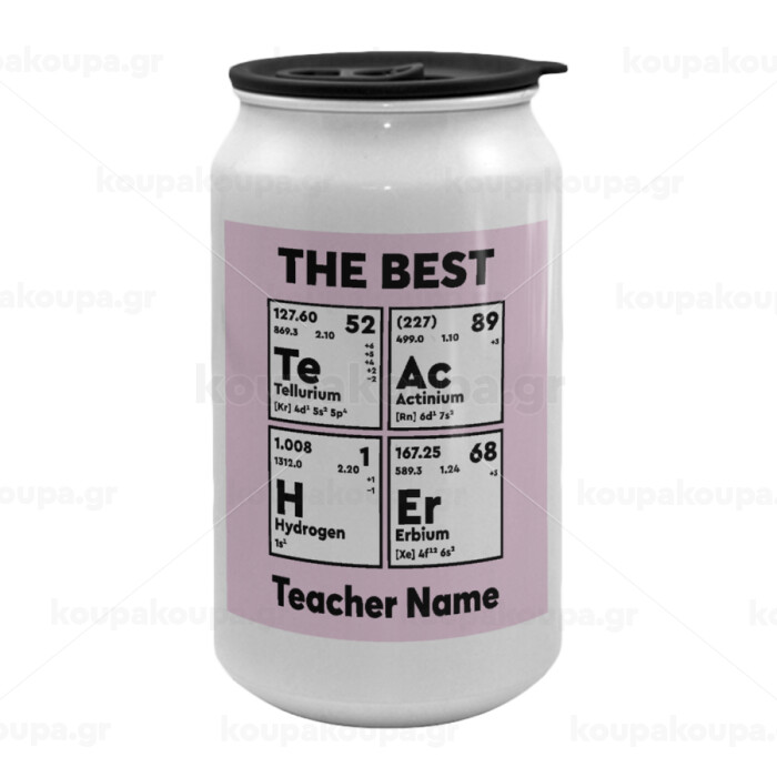 THE BEST Teacher chemical symbols, Κούπα ταξιδιού μεταλλική με καπάκι (tin-can) 500ml