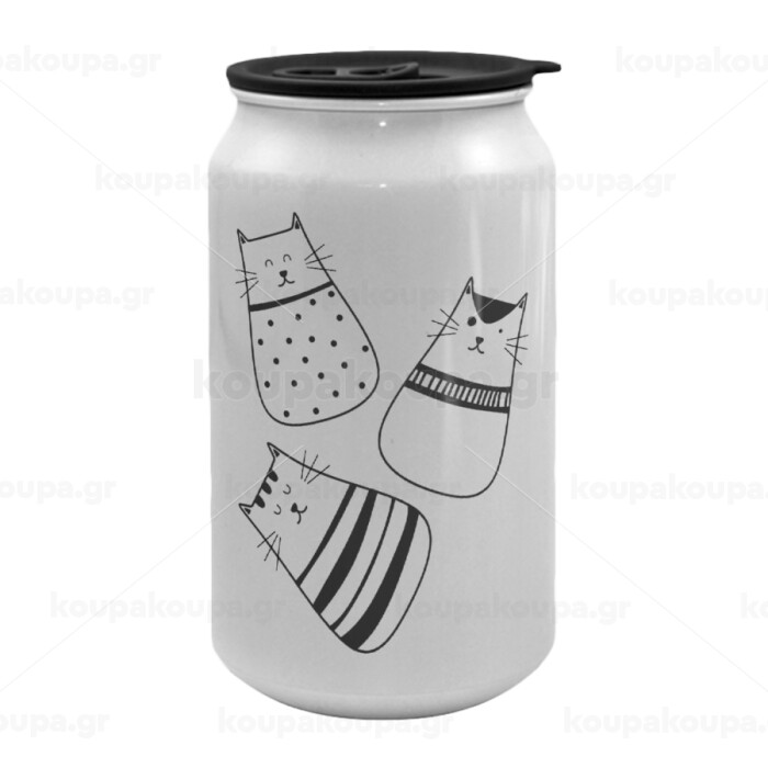 Cute cats, Κούπα ταξιδιού μεταλλική με καπάκι (tin-can) 500ml