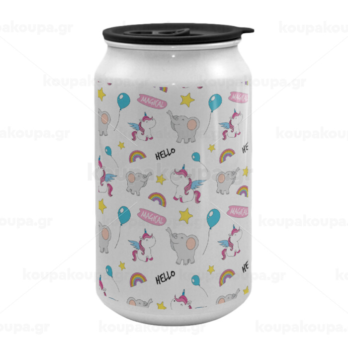 Happy Clouds Doodle, Κούπα ταξιδιού μεταλλική με καπάκι (tin-can) 500ml