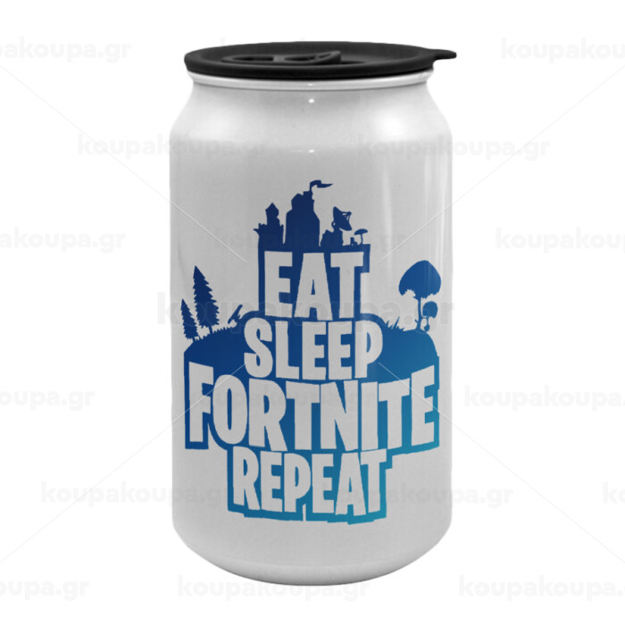 Eat Sleep Fortnite Repeat, Κούπα ταξιδιού μεταλλική με καπάκι (tin-can) 500ml