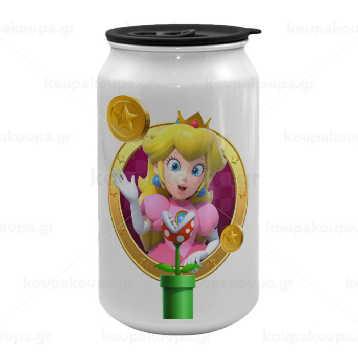 Princess Peach Toadstool, Κούπα ταξιδιού μεταλλική με καπάκι (tin-can) 500ml