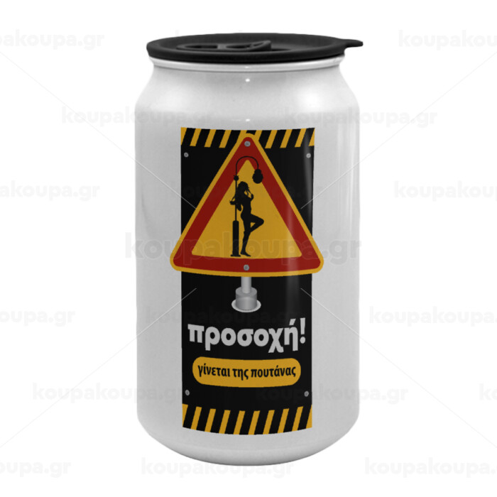 Προσοχή Γίνεται της πουτ.νας, Κούπα ταξιδιού μεταλλική με καπάκι (tin-can) 500ml