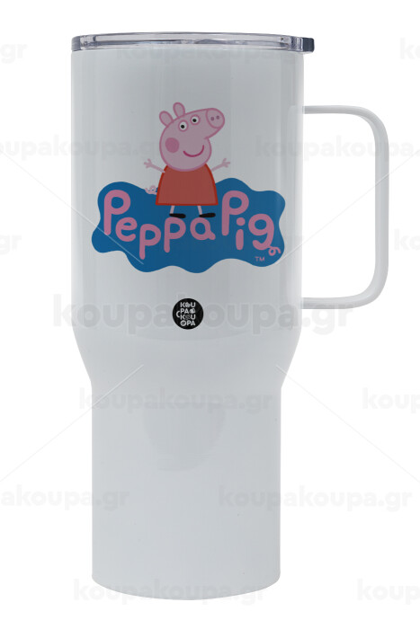 Πέππα το γουρουνάκι μπλε με όνομα, Tumbler με καπάκι, διπλού τοιχώματος (θερμό) 750L