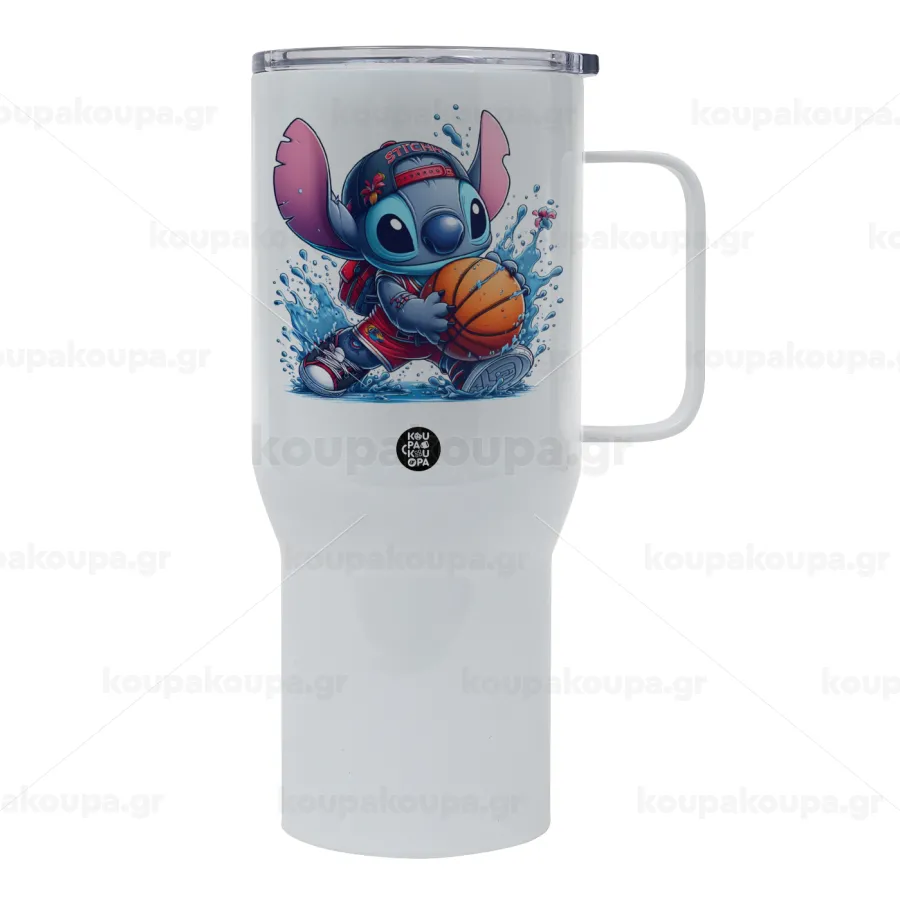 Stitch Basketball, Tumbler με καπάκι, διπλού τοιχώματος (θερμό) 750L