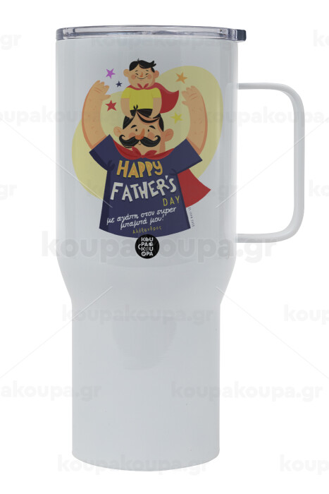 Happy Fathers Day με όνομα, Tumbler με καπάκι, διπλού τοιχώματος (θερμό) 750L