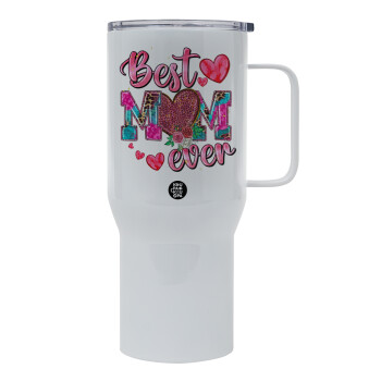 Best mom ever Mother's Day pink, Tumbler με καπάκι, διπλού τοιχώματος (θερμό) 750L