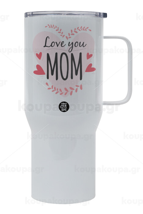 Mother's day I Love you Mom heart, Tumbler με καπάκι, διπλού τοιχώματος (θερμό) 750L