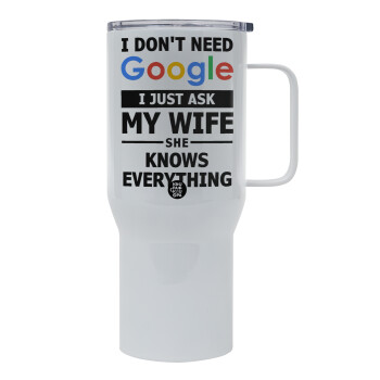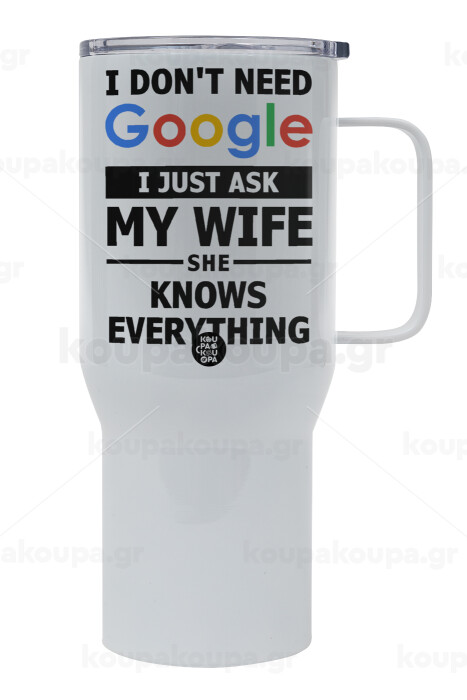 I don't need Google, just ask my WIFE, Tumbler με καπάκι, διπλού τοιχώματος (θερμό) 750L