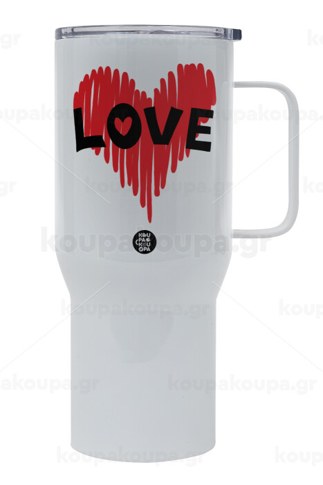 I Love You red heart, Tumbler με καπάκι, διπλού τοιχώματος (θερμό) 750L
