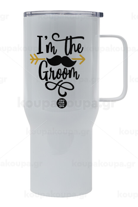 I'm the groom mustache, Tumbler με καπάκι, διπλού τοιχώματος (θερμό) 750L