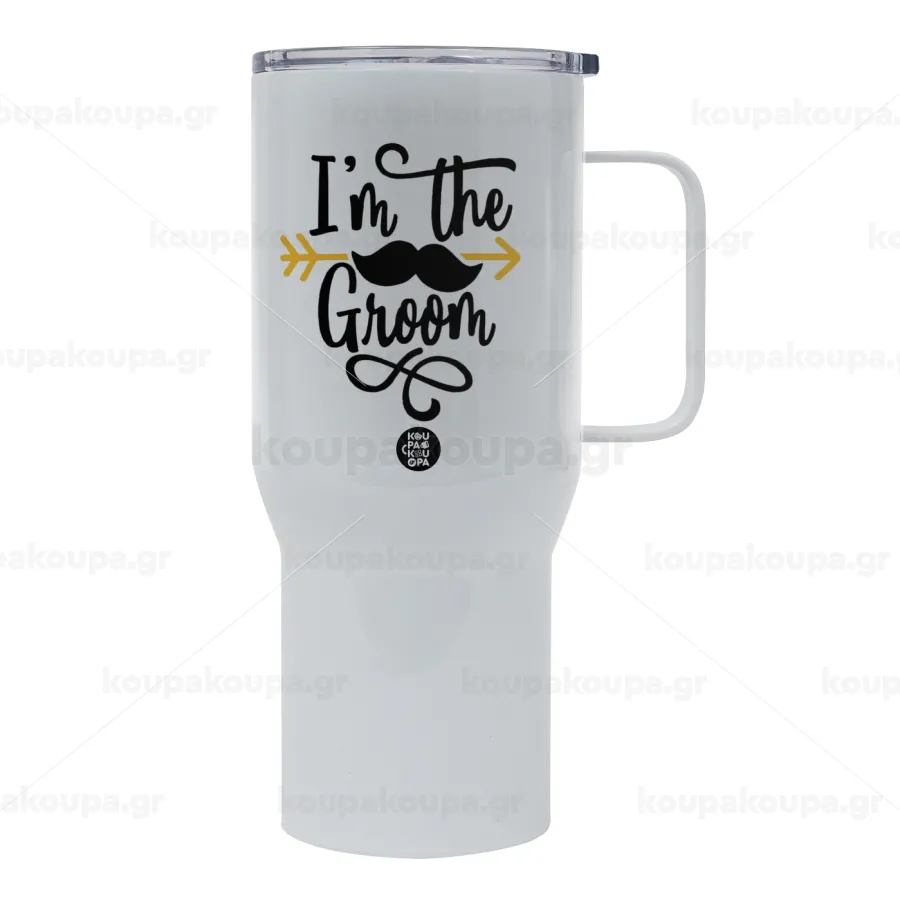 I'm the groom mustache, Tumbler με καπάκι, διπλού τοιχώματος (θερμό) 750L
