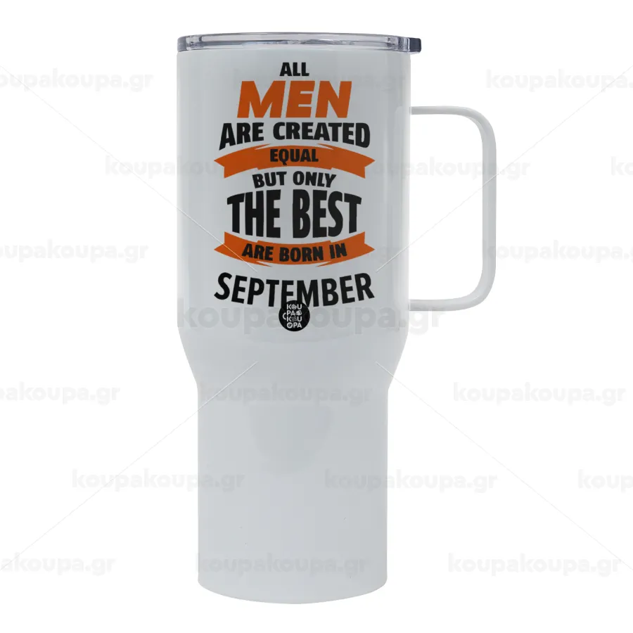 All men are created equal but only the best are born in September, Tumbler με καπάκι, διπλού τοιχώματος (θερμό) 750L