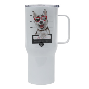 Warning, beware of Dog, Tumbler με καπάκι, διπλού τοιχώματος (θερμό) 750L