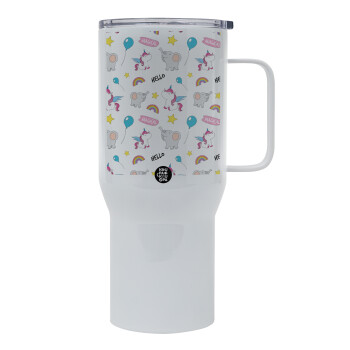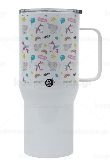 Happy Clouds Doodle, Tumbler με καπάκι, διπλού τοιχώματος (θερμό) 750L