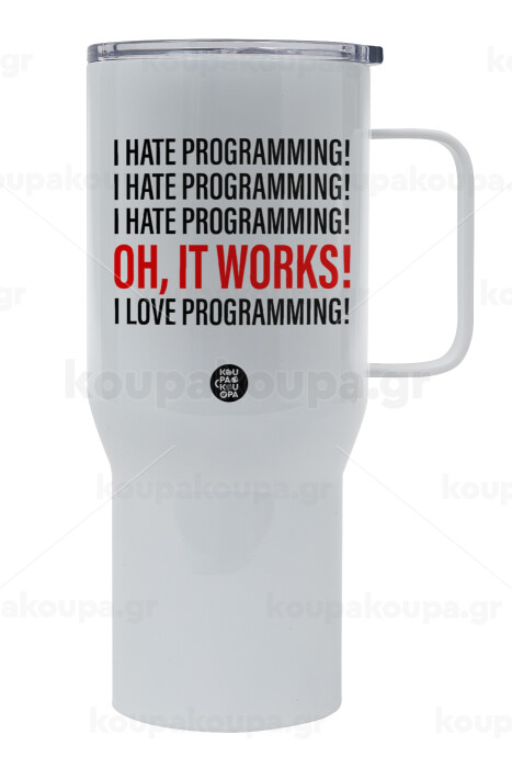 I hate programming!!!, Tumbler με καπάκι, διπλού τοιχώματος (θερμό) 750L