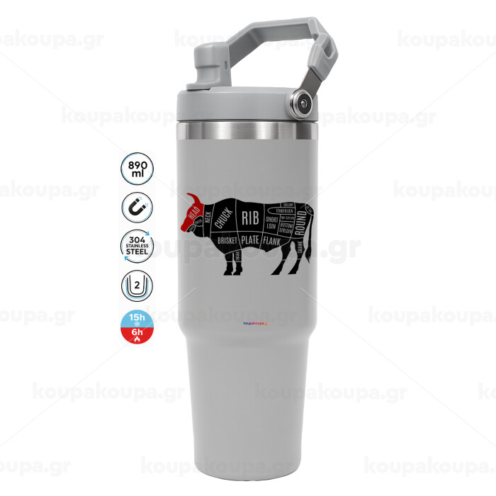 Diagrams for butcher shop, ΓΚΡΙ χρώματος Θερμός Ανοξείδωτο 890ml (30oz) με χερούλι