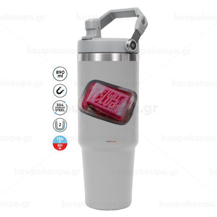 Fight Club, ΓΚΡΙ χρώματος Θερμός Ανοξείδωτο 890ml (30oz) με χερούλι