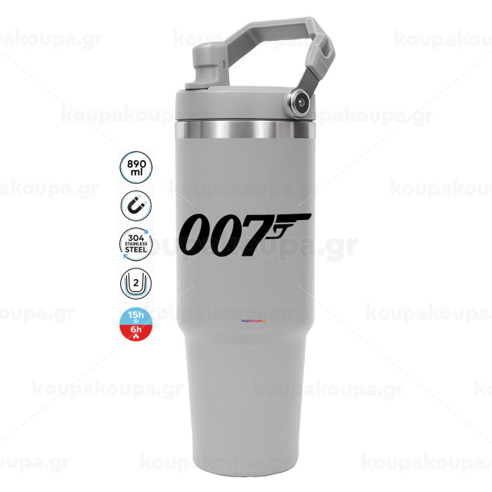 James Bond 007, ΓΚΡΙ χρώματος Θερμός Ανοξείδωτο 890ml (30oz) με χερούλι