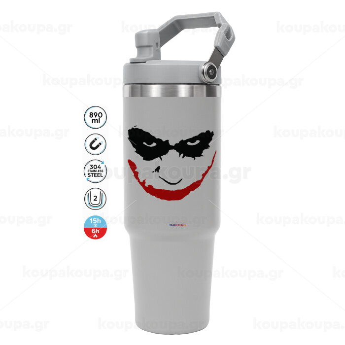 The joker smile, ΓΚΡΙ χρώματος Θερμός Ανοξείδωτο 890ml (30oz) με χερούλι
