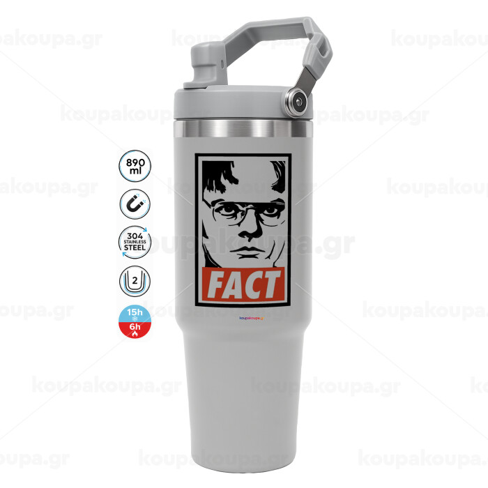 Dunder Mifflin FACT, ΓΚΡΙ χρώματος Θερμός Ανοξείδωτο 890ml (30oz) με χερούλι