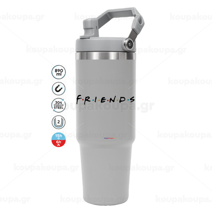 Friends, ΓΚΡΙ χρώματος Θερμός Ανοξείδωτο 890ml (30oz) με χερούλι