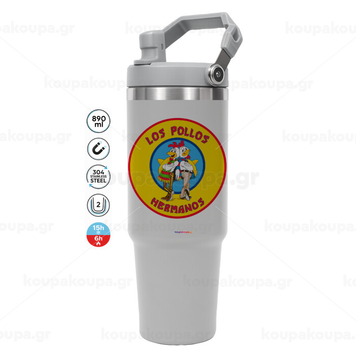 Los Pollos Hermanos, ΓΚΡΙ χρώματος Θερμός Ανοξείδωτο 890ml (30oz) με χερούλι