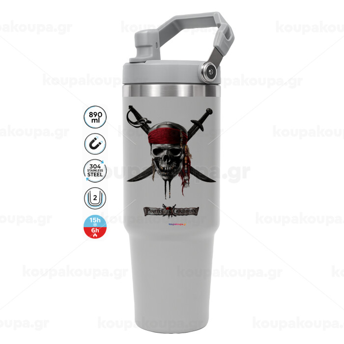 Pirates of the Caribbean, ΓΚΡΙ χρώματος Θερμός Ανοξείδωτο 890ml (30oz) με χερούλι