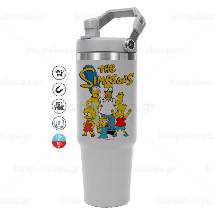 The Simpsons, ΓΚΡΙ χρώματος Θερμός Ανοξείδωτο 890ml (30oz) με χερούλι