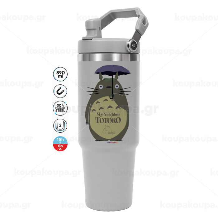 Totoro from My Neighbor Totoro, ΓΚΡΙ χρώματος Θερμός Ανοξείδωτο 890ml (30oz) με χερούλι