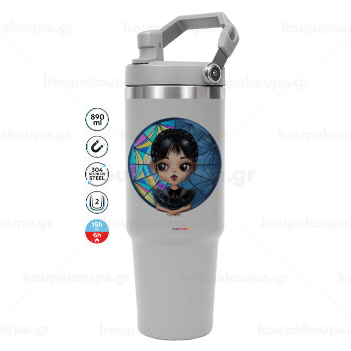 Wednesday big eyes, ΓΚΡΙ χρώματος Θερμός Ανοξείδωτο 890ml (30oz) με χερούλι
