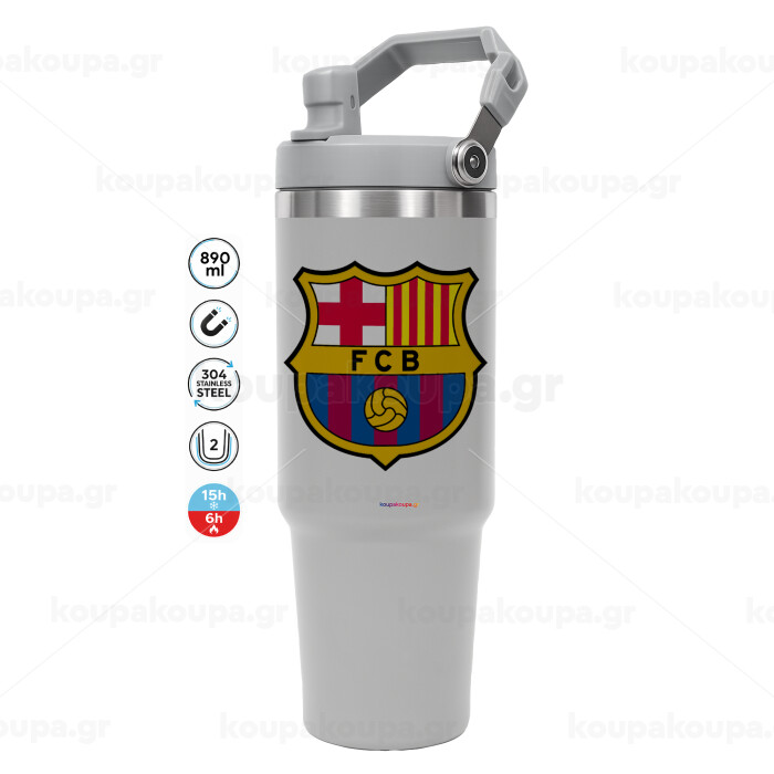 Barcelona FC, ΓΚΡΙ χρώματος Θερμός Ανοξείδωτο 890ml (30oz) με χερούλι