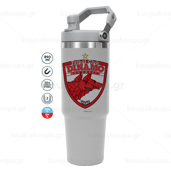 FC Dinamo Bucuresti, ΓΚΡΙ χρώματος Θερμός Ανοξείδωτο 890ml (30oz) με χερούλι