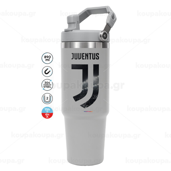 FC Juventus, ΓΚΡΙ χρώματος Θερμός Ανοξείδωτο 890ml (30oz) με χερούλι