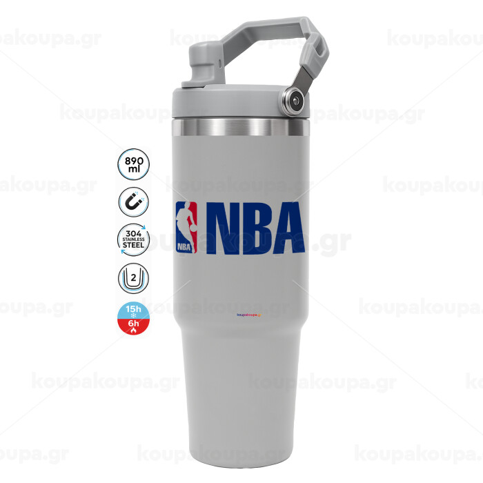 NBA, ΓΚΡΙ χρώματος Θερμός Ανοξείδωτο 890ml (30oz) με χερούλι