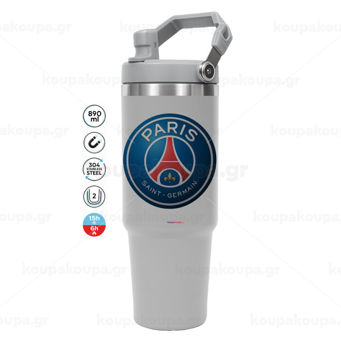 Paris Saint-Germain F.C., ΓΚΡΙ χρώματος Θερμός Ανοξείδωτο 890ml (30oz) με χερούλι