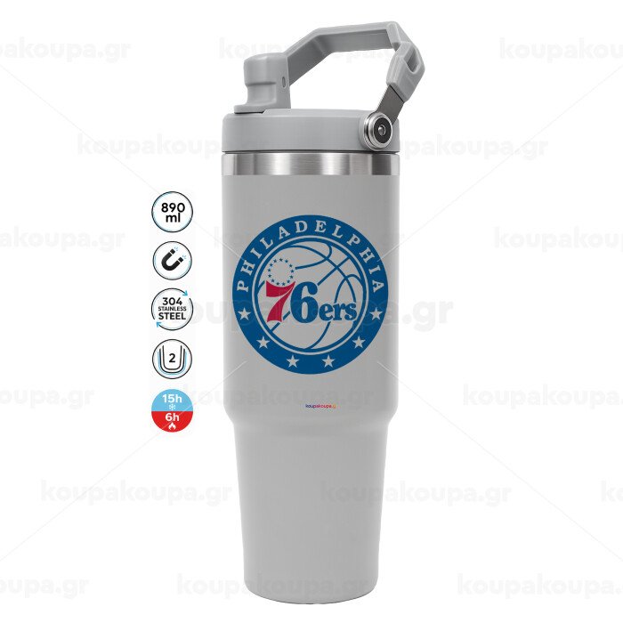 Philadelphia 76ers, ΓΚΡΙ χρώματος Θερμός Ανοξείδωτο 890ml (30oz) με χερούλι