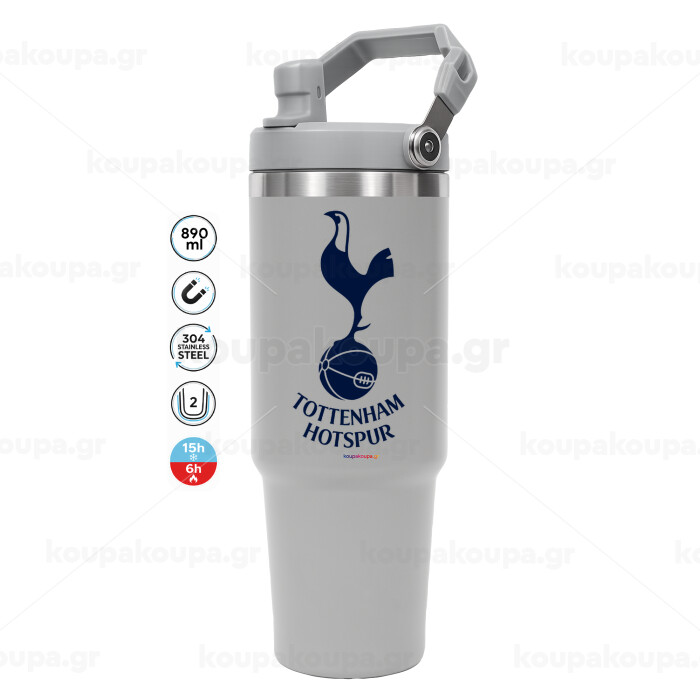 Tottenham Hotspur, ΓΚΡΙ χρώματος Θερμός Ανοξείδωτο 890ml (30oz) με χερούλι