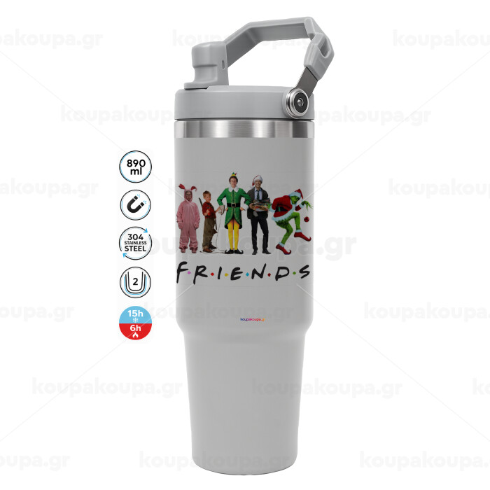 Christmas FRIENDS, ΓΚΡΙ χρώματος Θερμός Ανοξείδωτο 890ml (30oz) με χερούλι