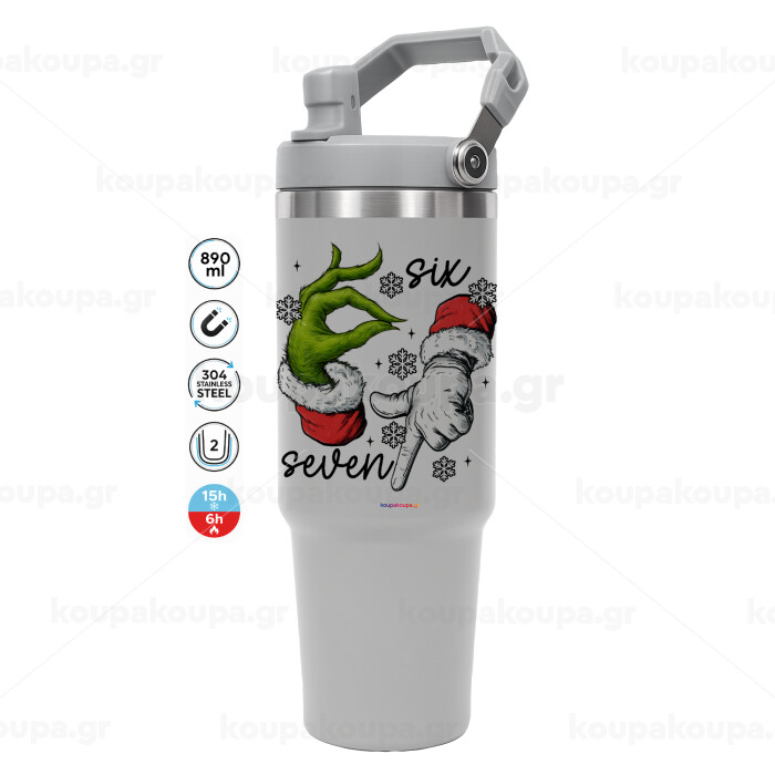 Christmas Meme SIX SEVEN (67), ΓΚΡΙ χρώματος Θερμός Ανοξείδωτο 890ml (30oz) με χερούλι
