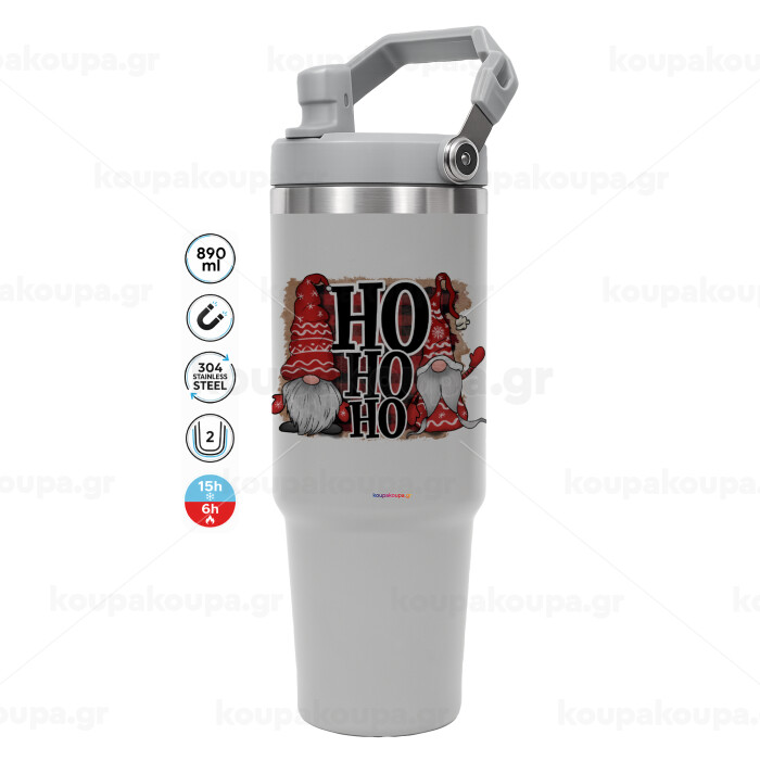 Ho ho ho, ΓΚΡΙ χρώματος Θερμός Ανοξείδωτο 890ml (30oz) με χερούλι