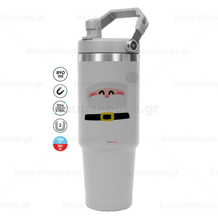 Simple Santa, ΓΚΡΙ χρώματος Θερμός Ανοξείδωτο 890ml (30oz) με χερούλι