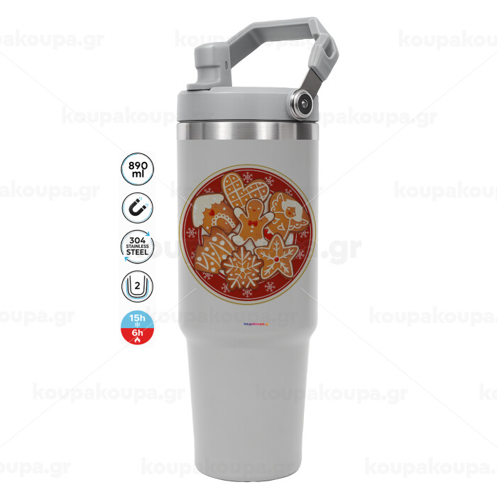 xmas cookies, ΓΚΡΙ χρώματος Θερμός Ανοξείδωτο 890ml (30oz) με χερούλι