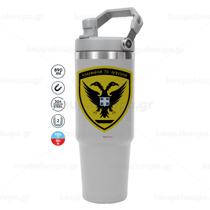 Ελληνικός Στρατός, ΓΚΡΙ χρώματος Θερμός Ανοξείδωτο 890ml (30oz) με χερούλι