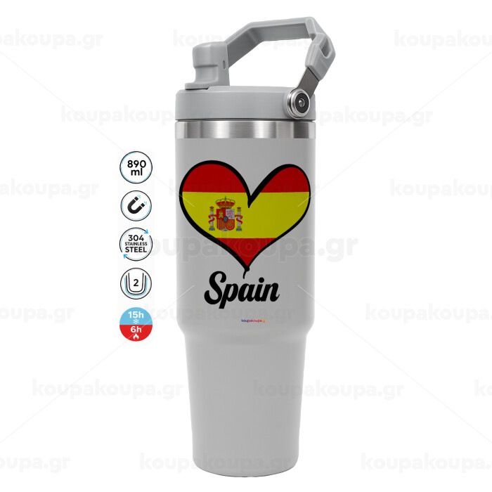 Spain flag, ΓΚΡΙ Travel Tumbler Θερμός με χερούλι και καλαμάκι 890ml