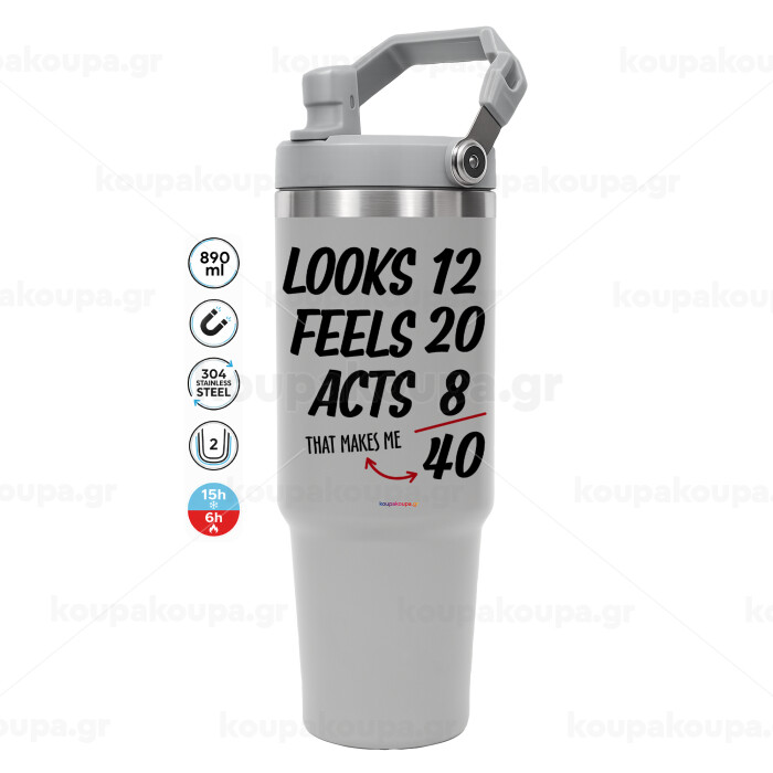 Looks, feels, acts LIKE your AGE, ΓΚΡΙ χρώματος Θερμός Ανοξείδωτο 890ml (30oz) με χερούλι