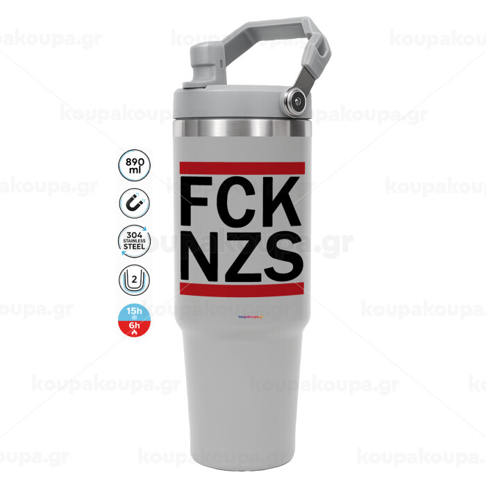 FCK NZS, ΓΚΡΙ χρώματος Θερμός Ανοξείδωτο 890ml (30oz) με χερούλι