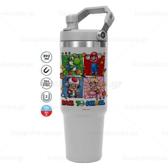 Back to the School Mario & Friends, ΓΚΡΙ χρώματος Θερμός Ανοξείδωτο 890ml (30oz) με χερούλι