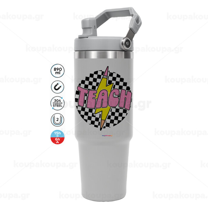 Teach, ΓΚΡΙ χρώματος Θερμός Ανοξείδωτο 890ml (30oz) με χερούλι