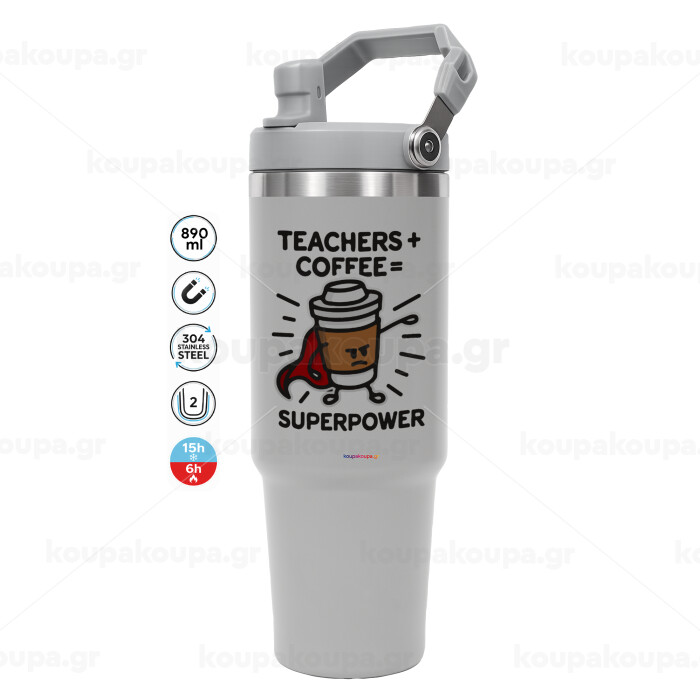 Teacher Coffee Super Power, ΓΚΡΙ χρώματος Θερμός Ανοξείδωτο 890ml (30oz) με χερούλι